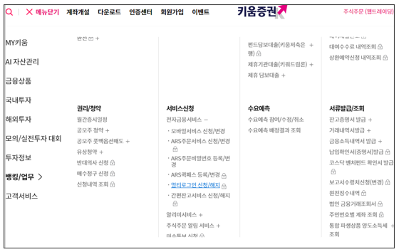 키움증권 홈페이지 > 전체메뉴 > 뱅킹/업무 > 서비스신청 > 멀티로그인 신청/해지