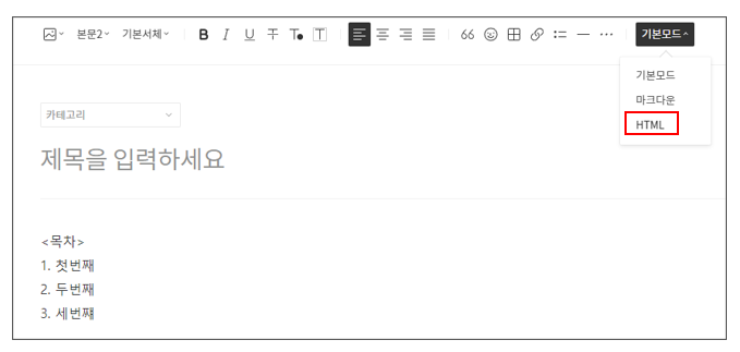 처음에 마크다운을 통해서 하려고했는데, 여기선 불가능하더라구요.