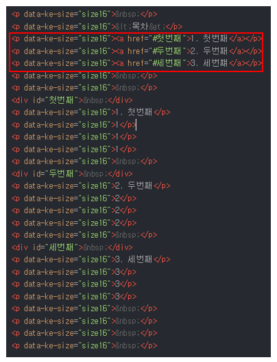 예시 ) <p><a href=#위치이름>목차</a></p>