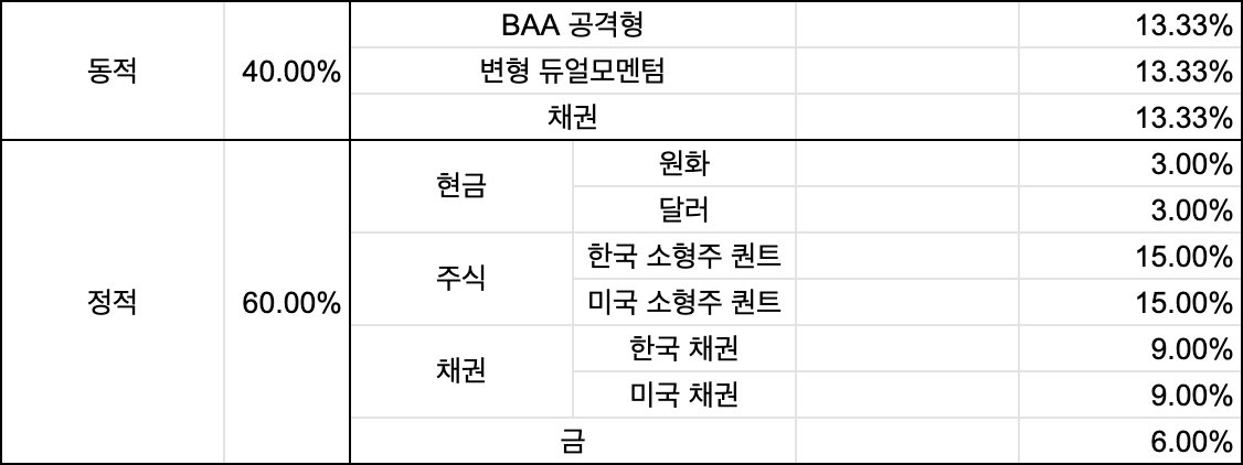 2023년부터는 동적자산배분+한국형 올웨더로 투자하려고 한다.