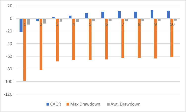 GP/A가 높을수록 CAGR이 높고 MDD가 낮은 경향을 보임