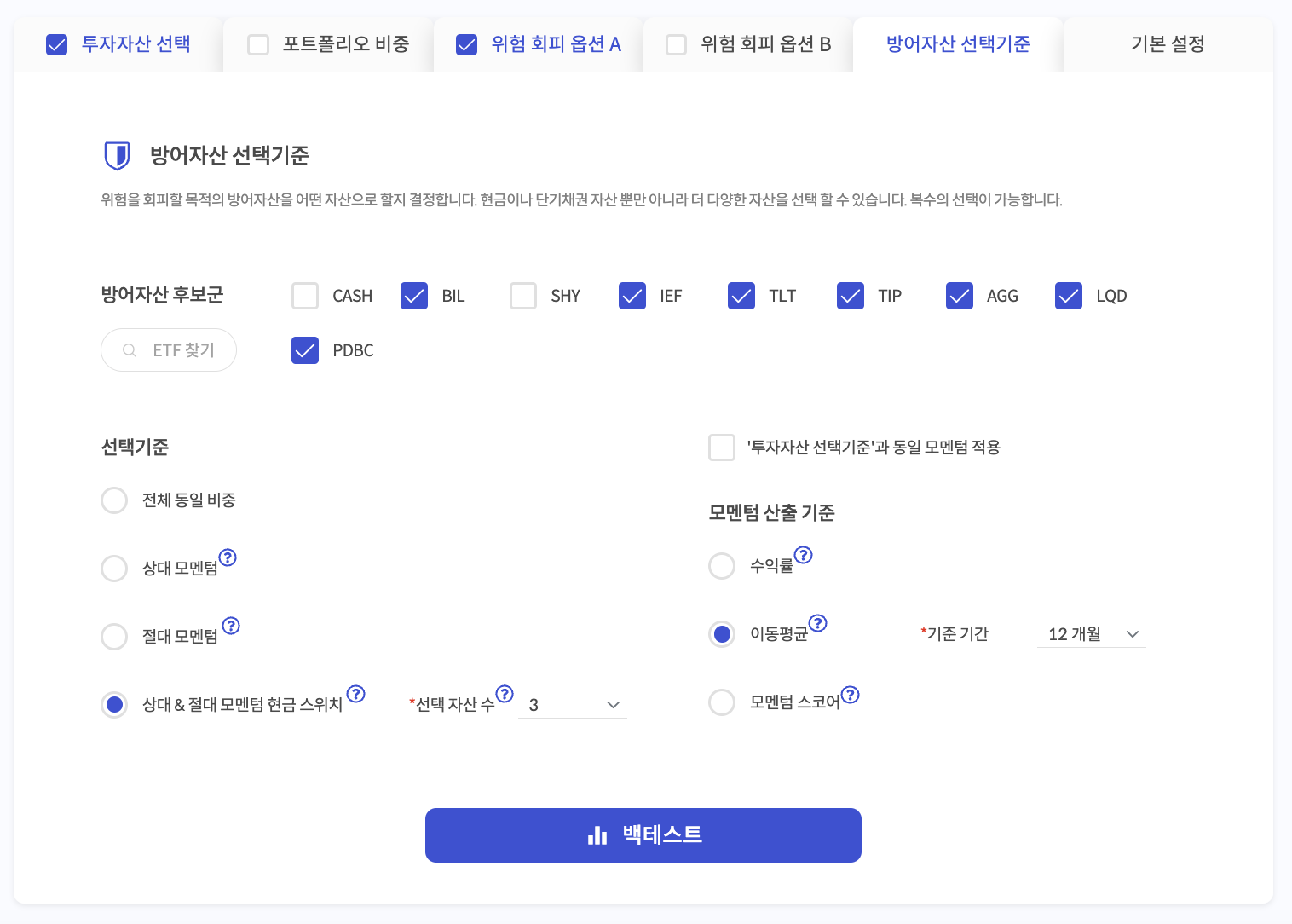 - 선택된 3가지의 BIL보다 작으면 그 자산 대신 BIL(현금)으로