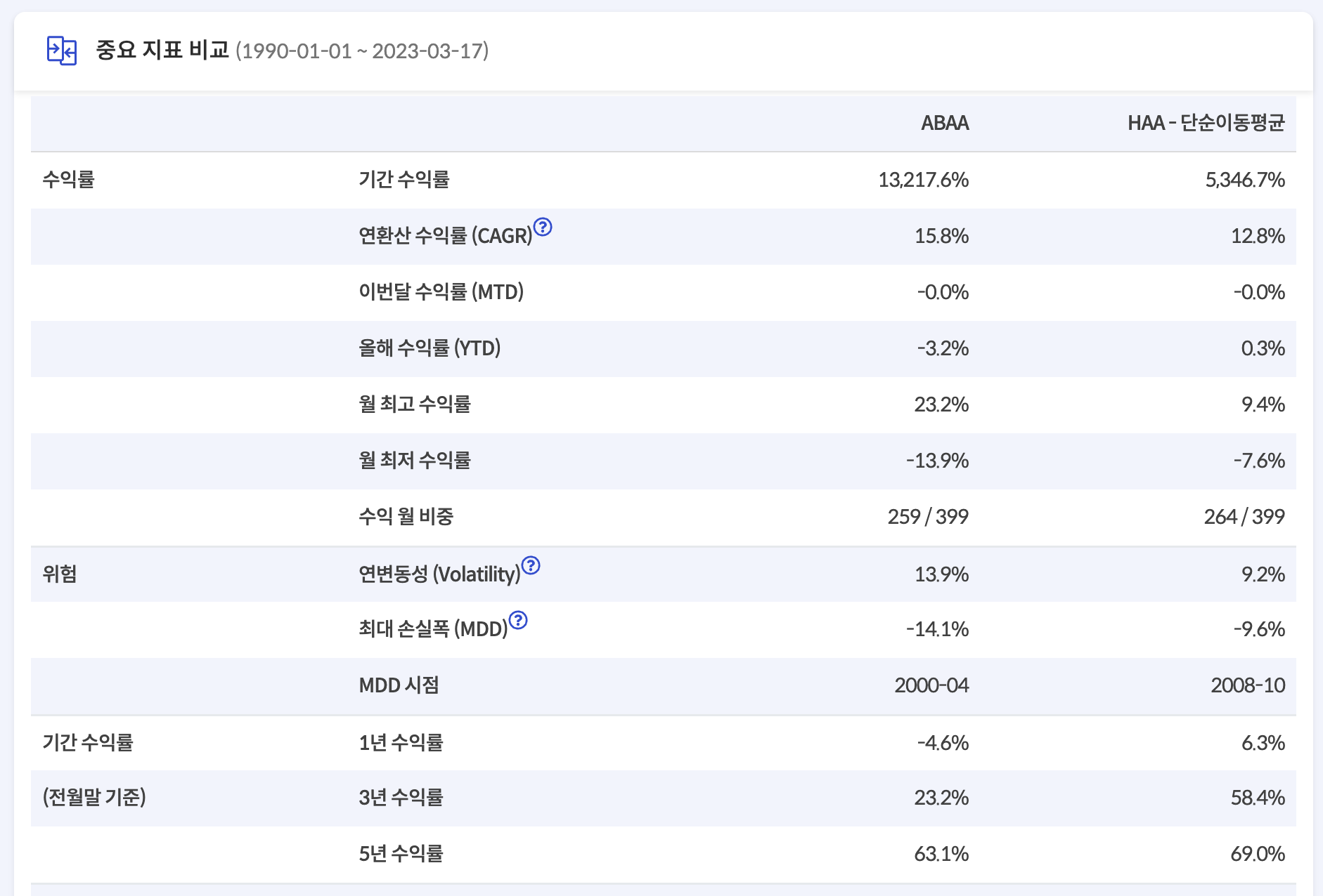 | [동적 자산배분] HAA + BAA + 변형듀얼모멘텀 혼합 전략 (4) | 2023.03.25 |